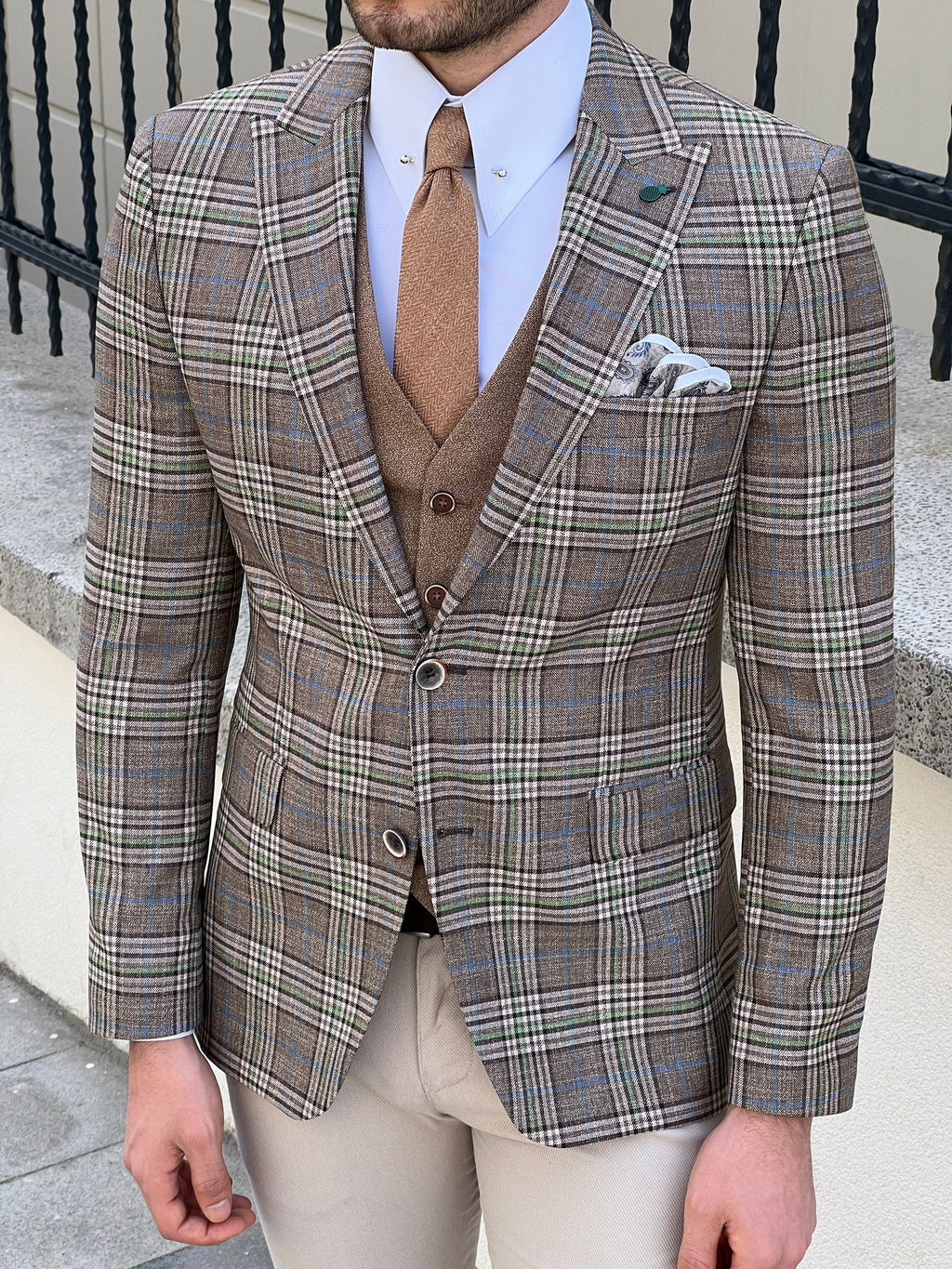 Bojoni Montebello Slim fit High Quality Woolen Beige Plaid Blazer